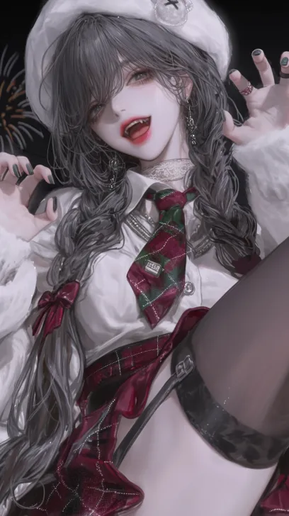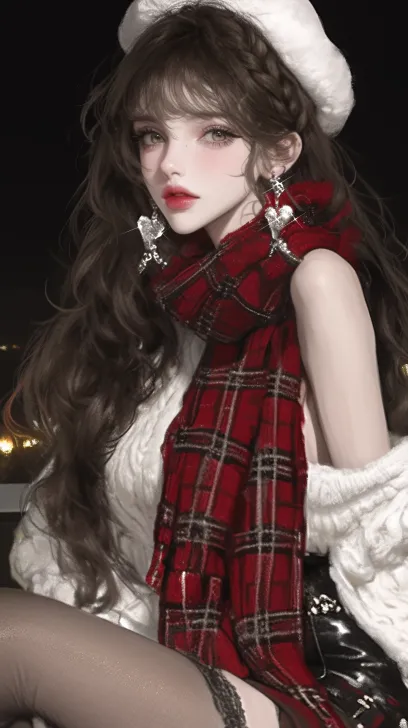 Midjourney Bot 更新时间:2026-02-13 00:15半写实动漫风,自然厚涂风,女,留着黑色双马尾长卷发和齐刘海,脸上带着元气满满的灿烂笑容,眼睛明亮有神。她头戴一顶带有可爱徽章的白色毛绒贝雷帽,脖子上围着一条酒红色格纹流苏围巾,上身穿着一件米白色的宽松针织毛衣,下身搭配一条酒红色格纹百褶短裙和浅灰色连裤袜。背景是纯黑色的夜晚,放着烟花。人物姿态活泼,双手,人物姿态活泼,双手做出俏皮的互动姿势,风格偏向日系JK、圣诞风、软萌少女,色彩温暖柔和,充满治愈感。 丰满妆容,细腻肤质,最佳质量,16K质量,超高清,高分辨率,超精细,半写实动漫风格,全身角色,半身,全景,全身,头部特写,闪光粉, --ar 9:16 --stylize 283 --niji 6 --profile qj3ncyd i4tdin8 zh6vdyu