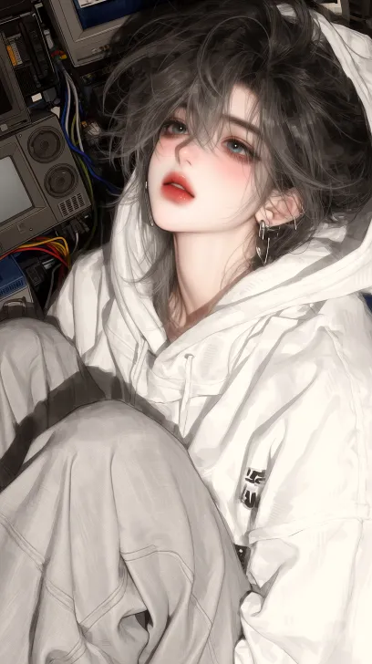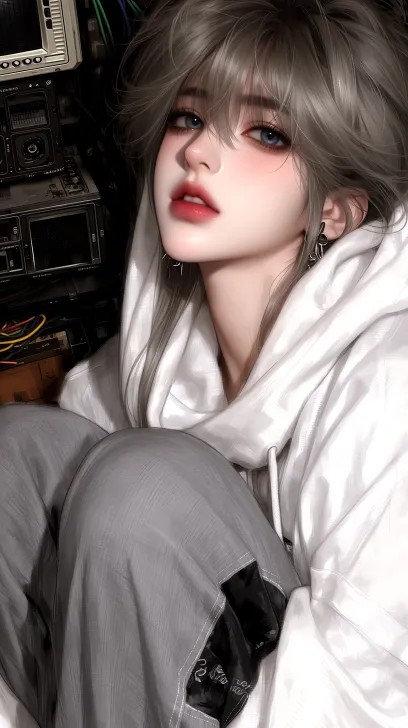 Midjourney Bot 更新时间:2026-02-13 00:18一位年轻女性,二十岁左右,拥有精致秀气的容貌,面部轮廓线条柔和流畅,鼻子高挺笔直,嘴唇线条清晰分明,具有东亚人的典型特征,属于二次元绘画风格,穿着宽松的白色高领毛衣和浅灰色休闲长裤,头发是略带灰调的亚麻金色,眼瞳是清澈的灰蓝色,唇部是自然的淡粉色,皮肤是细腻的冷白色,头发呈现出柔软蓬松的质感,皮肤光滑如瓷器般带有轻微光泽,嘴巴小巧嘴角微微上扬,眼睛大而圆眼尾略微下垂,眉毛细长颜色浅淡形状柔和,耳朵轮廓分明耳垂小巧,人物坐在布满老旧电子元件的废弃房间地板上,姿态放松双腿随意曲起,背景是堆叠的显像管显示器和缠绕的彩色线缆,眼神略带迷茫望向远处,表情平静中透着一丝疏离,采用中景镜头捕捉全身姿态,光线是冷色调的荧光灯管照明,画风具有数字低保真和早期互联网图像特质,笔触带有轻微像素化和色彩分离效果,整体质感模拟早期CRT显示器显像,画质模仿低分辨率JPEG压缩图像,其余身体部位包括纤细的脖颈和修长的手指自然搭在膝盖上,参考画师风格借鉴了数字艺术先驱作品中的扁平化色彩与几何构图特点。 --ar 9:16 --stylize 490 --niji 7 --profile xe5id5h
