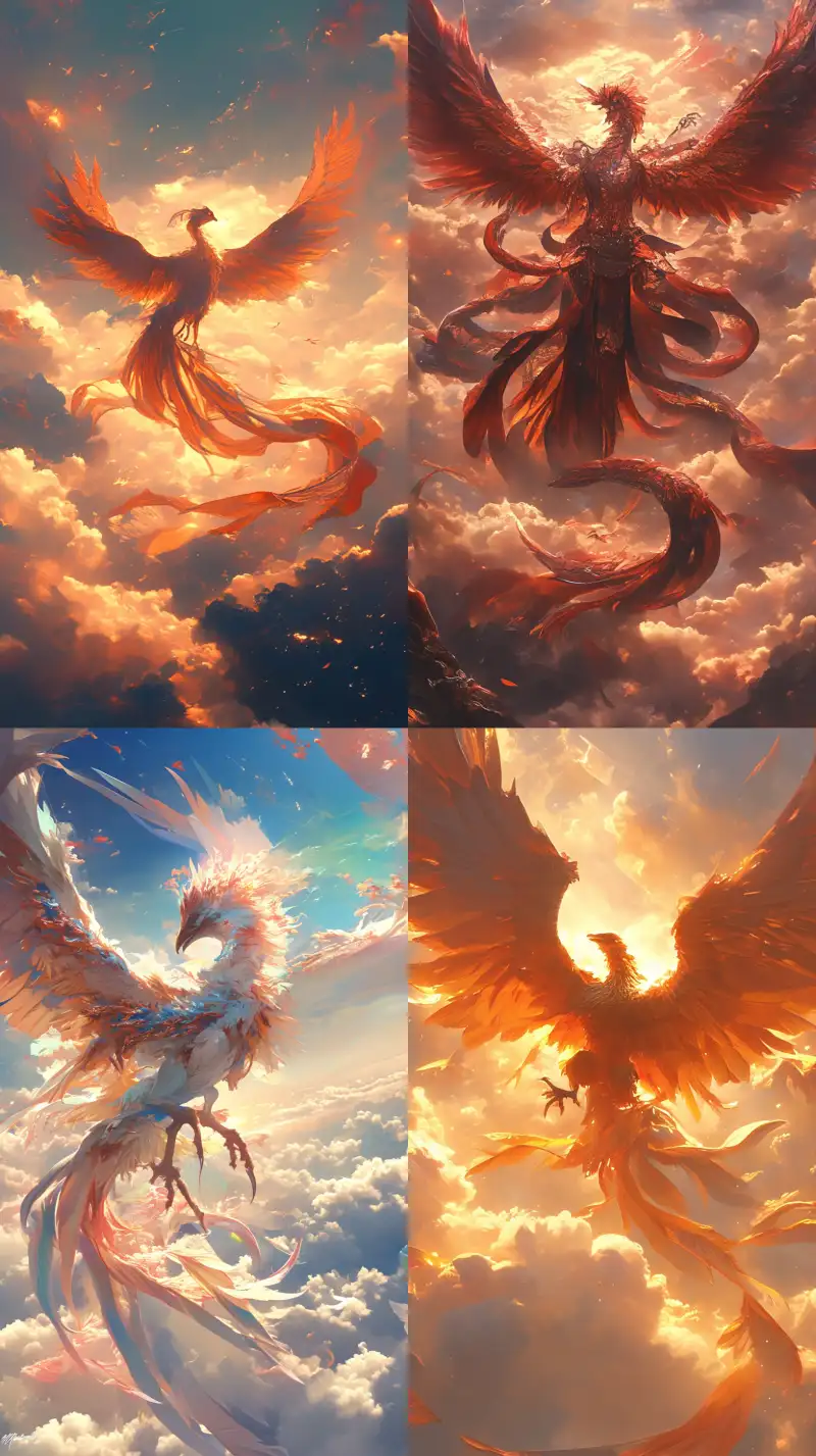 Midjourney Bot 更新时间:2024-05-29 00:00A phoenix, soaring in the clouds, with super details, 3D --ar 9:16 --niji 6