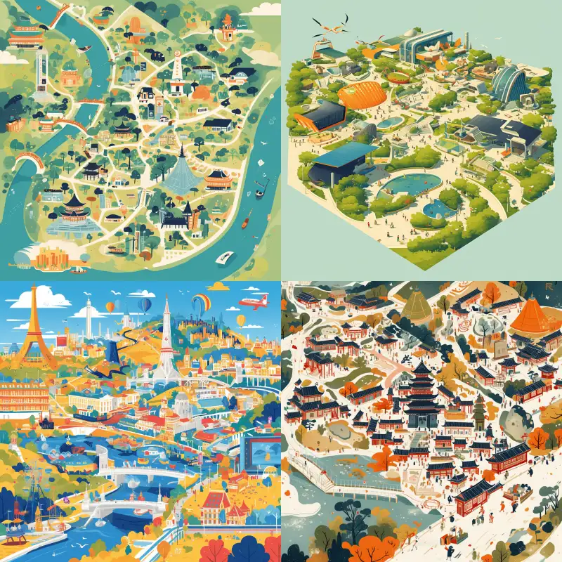 Midjourney Bot 更新时间:2024-05-29 00:01Nanjing Modern Psychological Cognitive Map Tourist Attraction Plan Cartoon --ar 1:1 --niji 6