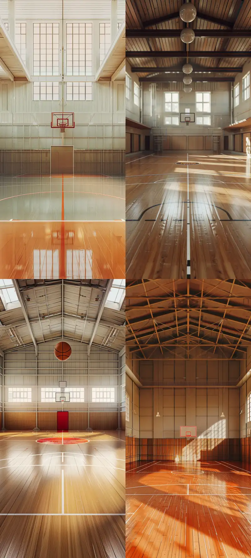 Midjourney Bot 更新时间:2024-05-25 00:04An indoor half court basketball court with international markings. Centrally symmetrical composition, front view, C4D, Chinese style, minimalist style --ar 9:20 --v 6.0