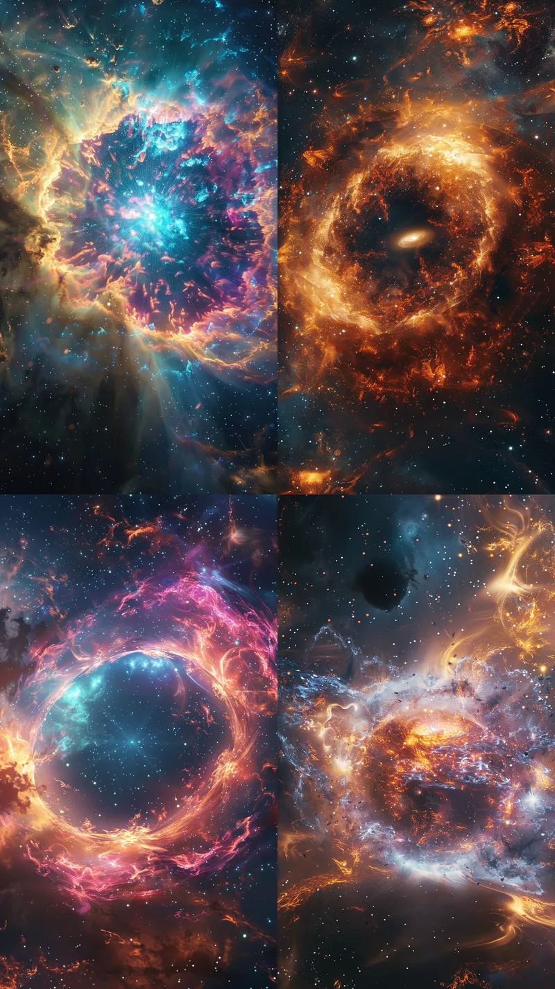 Midjourney Bot 更新时间:2024-05-23 00:00This photo captures the mesmerizing beauty of a supernova, captured with astonishing high-definition resolution as it drifts through vast time and space towards a black hole. This is a true miracle of the universe. --ar 9:16 --v 6.0