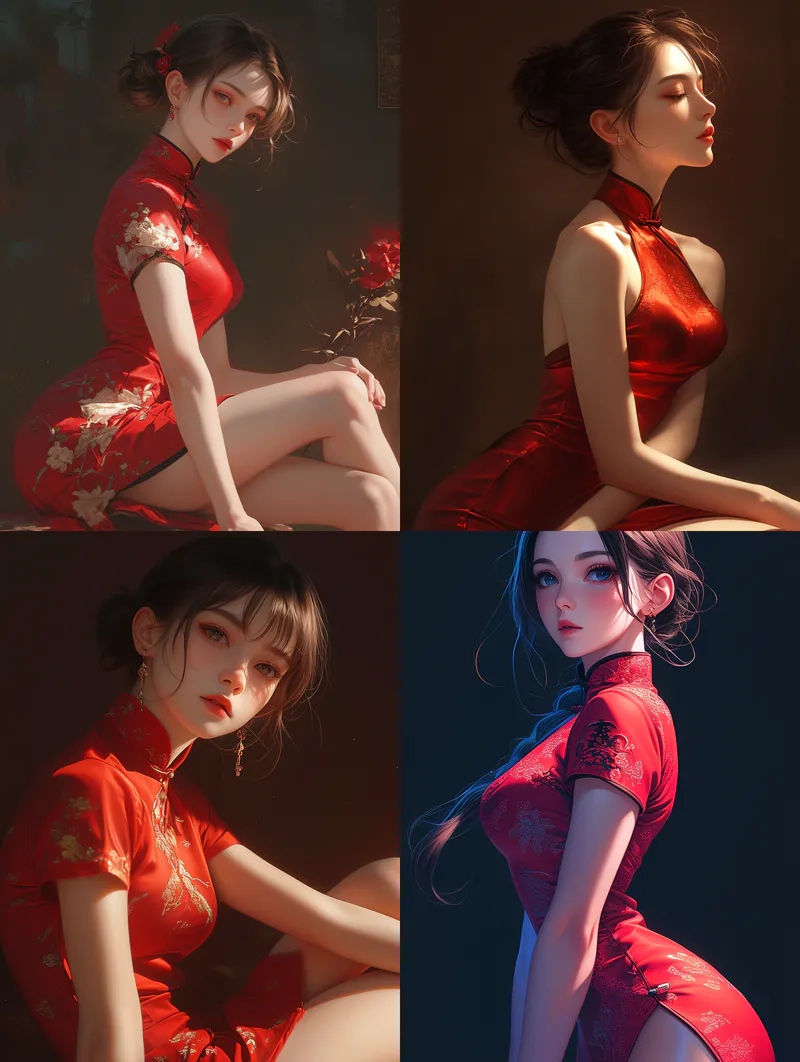 Midjourney Bot 更新时间:2024-05-18 00:06A beautiful girl wearing a red qipao, perfect figure, dark background, low angle shooting, realism, surreal photography --ar 3:4 --niji 6