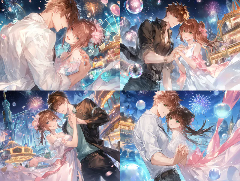 Midjourney Bot 更新时间:2024-05-17 00:05Couple, Sweet Couple, one man and one woman, sweet girl and handsome boy pink bubble (looking at each other), male and female couple, one man and one woman, amusement park, night, fireworks, sweet, stunning.. (Masterpiece), (Masterpiece), (Highest Picture Quality), (Rich in Details), (Clear Face), (Exquisite Fine Eyes), (Detailed Facial Description), (Detailed Hand Description), (Exquisite CG), Ultimate Light and Shadow, (Fine Facial Features), --sref