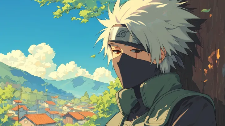 Midjourney Bot 更新时间:2026-02-11 00:0980年代日本动画风格的卡卡西,穿着黑色忍者服,戴面罩,银色头发随风飘动,独眼带着神秘眼神,慵懒地靠在森林树木旁。背景是怀旧的日出光线照射下的小村庄和山脉,色彩柔和复古,赛璐珞渲染数字绘画,高细节动画质感,全身动态姿势。 最佳质量,超高清,16K质量,高分辨率,超精细,超写实, --ar 16:9 --stylize 100 --niji 6