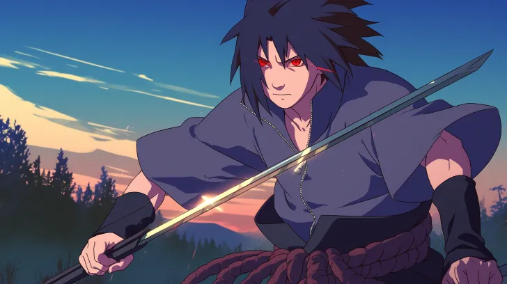 Midjourney Bot 更新时间:2026-02-11 00:1180年代日本动画风格的宇智波佐助,身穿深蓝色忍者服,黑色头发向后飘动,写轮眼散发锐利红光,年轻脸庞带着冷峻忧郁表情,手持苦无准备战斗。背景是黎明森林和隐约的村落山影,柔和晨光照亮复古色调,赛璐珞渲染数字绘画,高细节动画质感,全身动态姿势。 最佳质量,超高清,16K质量,高分辨率,超精细, --ar 16:9 --stylize 100 --niji 6