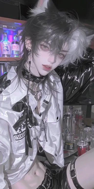 Midjourney Bot 更新时间:2026-02-11 00:23一个俊美动漫男人,男人motiefed 海洋水母,伞状体边缘长有须状触手,长长的须状触手,丝绸,半黑半白色,淡色,透明感肌,对比白蓝,冷白皮,腹肌可见,半黑半白色发,穿着半黑半白色乳胶围裙,头发湿漉漉的,磨砂玻璃,水蒸气,动漫美学,黑暗漫画,a --ar 9:16 --stylize 180 --niji 6 --no no
