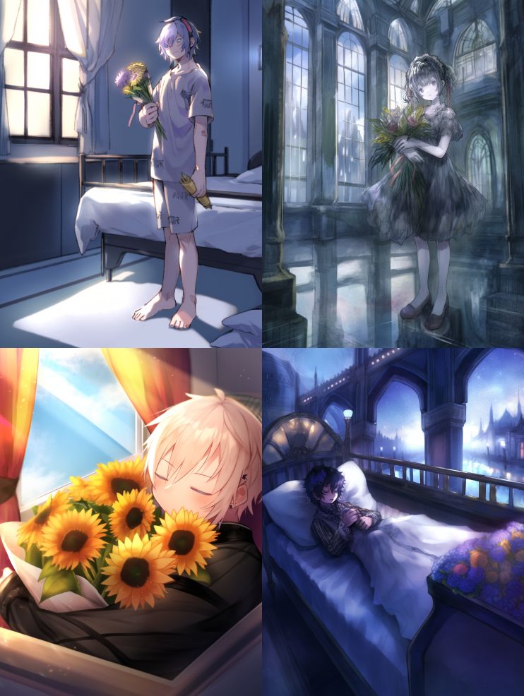 Midjourney Bot 更新时间:2024-05-11 00:02At night, a little girl was sleeping in bed, holding a bouquet of sunflowers in her hand. The soft moonlight shone in outside the window --no animal --c 100 --ar 3:4 --style cute --niji 5