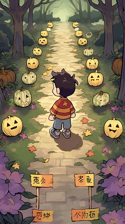Midjourney Bot 更新时间:2026-02-10 00:07https://images.gogpt.vip/aigf/m_origin/20260209/2054462/pfgtkodsvbena1qx.png 勇气之路的游戏画面,中央是一条小路,路两旁种满了绿色的南瓜和一些幽灵。画面中有一个小男孩,头发短小,穿着红色上衣和黄色短裤,表情显得困惑或惊讶。背景是色彩柔和的树木和紫色的天空,营造出一种奇幻的氛围。画面的上方有“今日游戏:勇气之路”的字样,下方有“今日存钱挑战成功!”的说明,旁边排列着多种金额的金币和纸币,色彩丰富,整体设计充满童趣。 --ar 9:16 --style cute --stylize 393 --iw 0.5 --niji 5