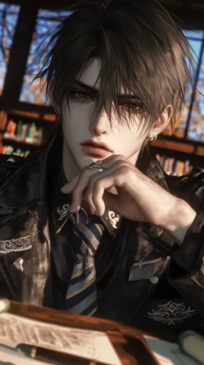Midjourney Bot 更新时间:2026-02-10 00:142.5D细腻磨砂厚涂绘画 一个俊美无双的少年 少年黑色短发 身穿学校制服(黑色学院制服纹理清晰+内搭+领带) (领带要求有花边镶边条纹 颜色搭配好看)一只手撑着下巴 手骨节分明 非常好看 看起来慵懒阳光 少年刘海“M”型 不遮住眼睛的情况下非常有型 发丝根根分明 少年睫毛长长的根根分明 黑色桃花眼 少年在校园图书馆里 阳光撒下来非常好看 少年坐在座位上 桌上摆着一些书 旁边放着一纸钢笔 桌面干净 看起来非常好看 俯视视角 平视镜头 近景 后面场景是图书柜和窗户 8k画质 高分辨率 冷色调 低饱和 --ar 9:16 --style raw --stylize 715 --niji 6 --profile enrcvog --no 黑指甲