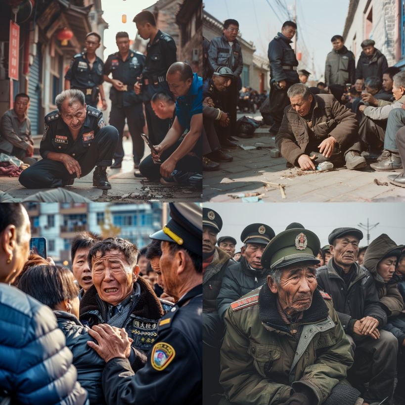 Midjourney Bot 更新时间:2024-05-03 00:00A group of Chinese police officers held down a middle-aged Chinese rural man who was crying with sadness on the street. onlookers looked at them with sadness, taking wide-angle shots of the people and buildings around them, color photos, and natural light,,Vanishing point composition::84 --c 6 --ar 1:1 --v 6.0