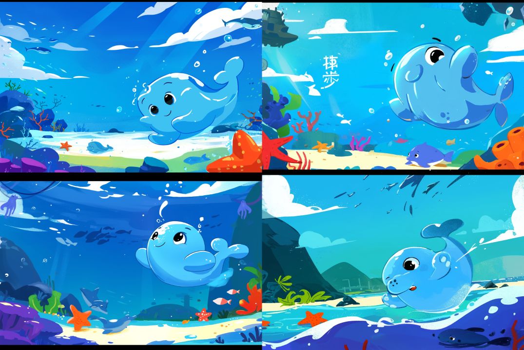 Midjourney Bot 更新时间:2024-04-29 00:01In a coral forest at the bottom of the sea, a cute little octopus suddenly felt panicked. It quickly sprayed ink, staining the surrounding seawater black. Little dolphins and starfish were frightened by this sudden change and fled everywhere.,panorama,Cartoon,Ultra Wide Angle,Top view --sref