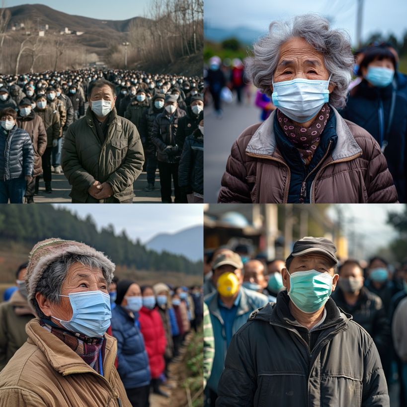 Midjourney Bot 更新时间:2024-04-29 00:00Photo, rural road, take a picture of a middle-aged person in rural China, standing in the crowd wearing medical masks, on a rural road, --c 6 --ar 1:1 --v 6.0