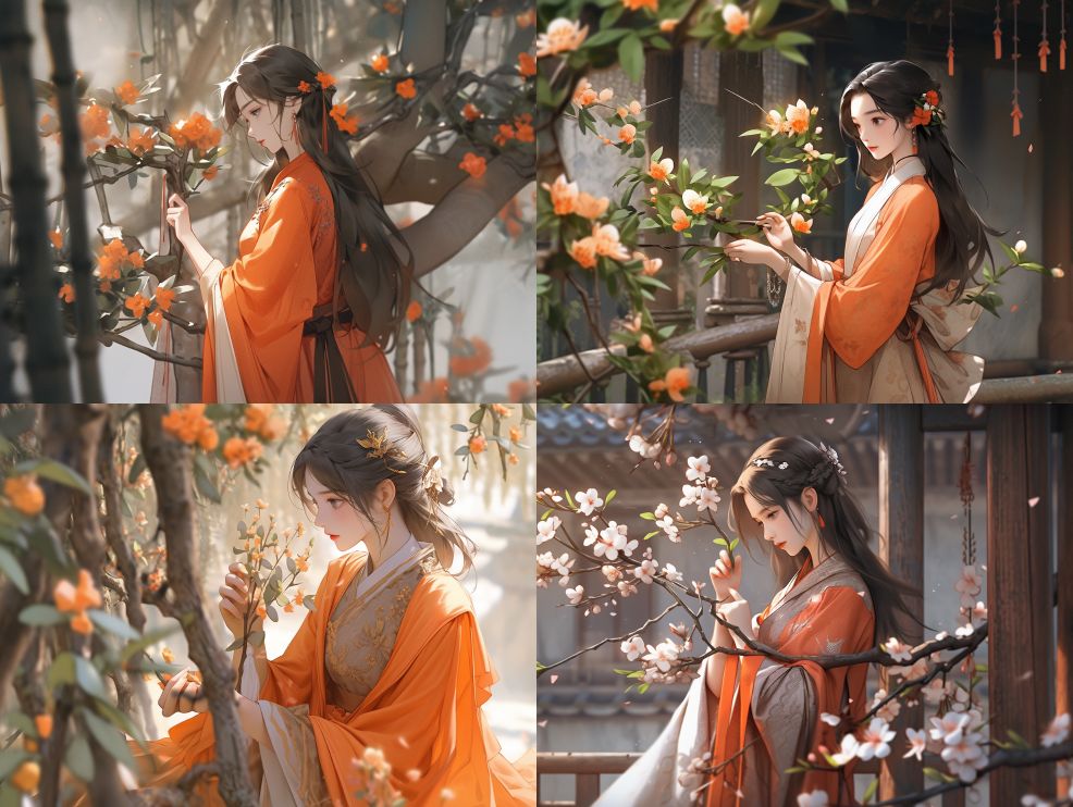Midjourney Bot 更新时间:2024-04-08 00:05Han Man, an ancient Chinese maid, wearing an orange robe, angry, jealous, pruning flower branches, yard. Ancient costume, exquisite Han Liu manga CG, small scenes, delicate texture processing, contrast between virtual and real, 16k, ultra high definition, realistic, anime --ar 4:3 --niji 5
